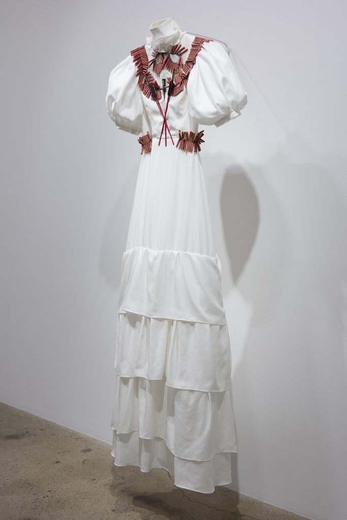 Audrey Wollen. Only Detonate, 2017. Cotton dress and fireworks, 76 x 27 x 8 inches