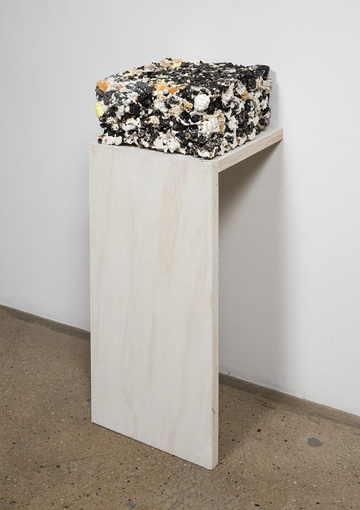 Pablo Rasgado. Block, 2016. Carbon, Nitrogen, Calcium, Phosphorous, Potassium, Sulfur, Sodium, Chlorine, Magnesium, Iron, Fluorine, Zinc, Silicon, Rubidium, Strontium, Bromine, Lead, Copper, Aluminum, Cadmium, Cerium, Barium, Tin, Iodine, Titanium, Boron, Selenium, Nickel, Chromium, Manganese, Arsenic, Lithium, Mercury, Caesium, Molybdenum, Germanium, Cobalt, Antimony, Silver, Niobium, Zirconium, Lanthanum, Tellurium, Gallium, Yttrium, Bismuth, Thallium, Indium, Gold, Scandium, Tantalum, Vanadium, Thorium, Samarium, Radium, Tungsten and Beryllium. 8 x 16 x 16 inches (20.3 x 40.6 x 40.6 cm)