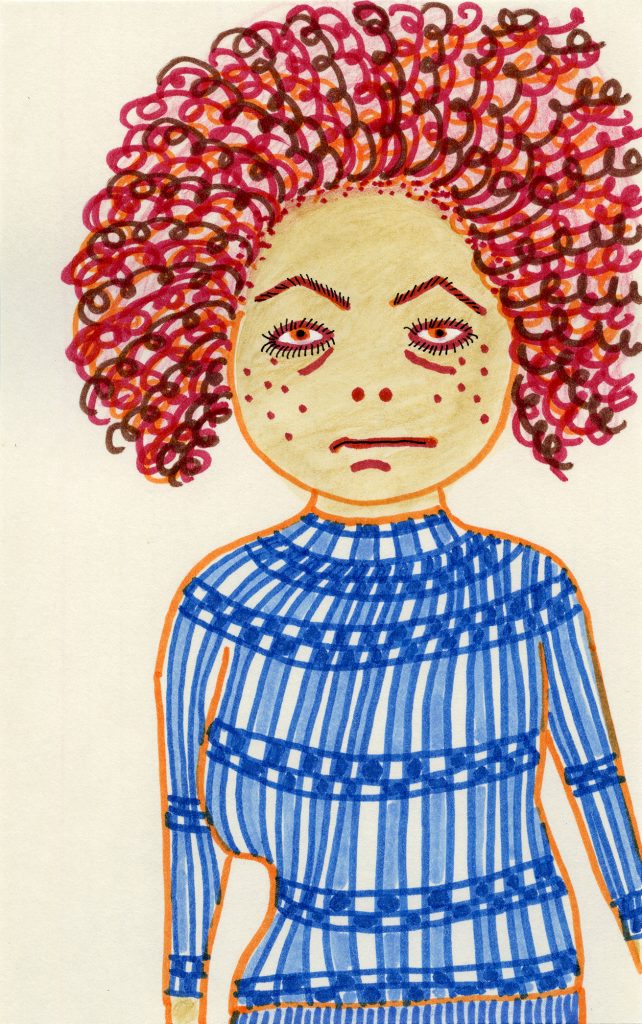 Laylah Ali. Untitled 8, 2017. Archival marker, colored pencil and ink on paper. 8 x 5 inches (20.3 x 12.7 cm)