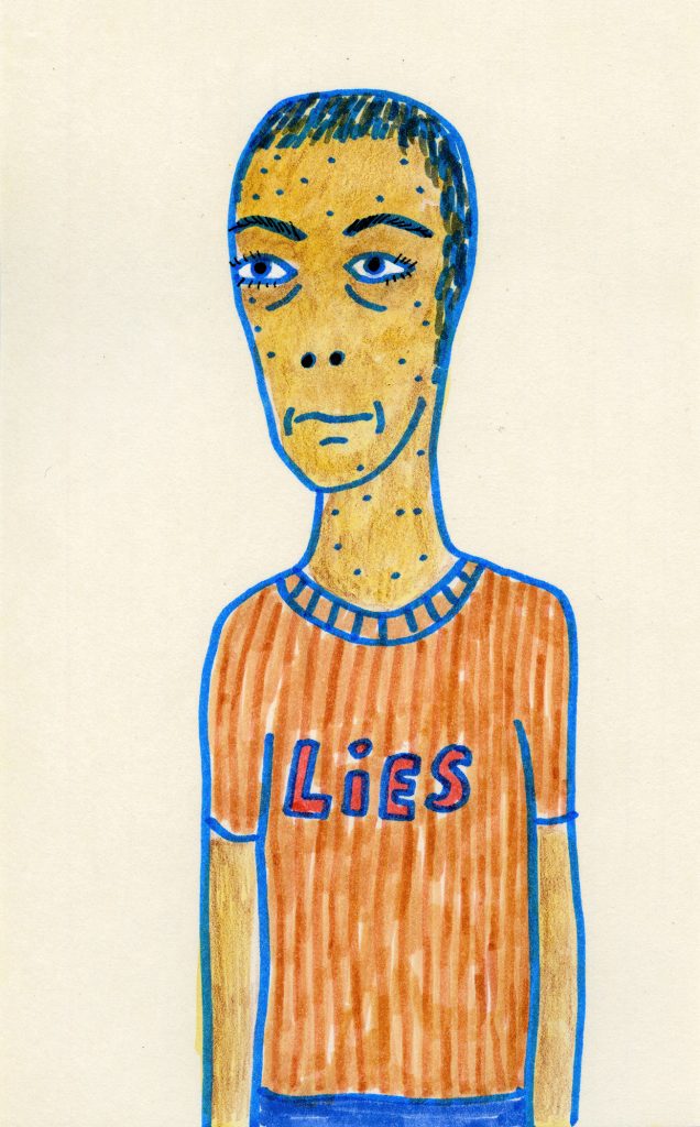 Laylah Ali. Untitled 2, 2017. Archival marker, colored pencil and ink on paper. 8 x 5 inches (20.3 x 12.7 cm)