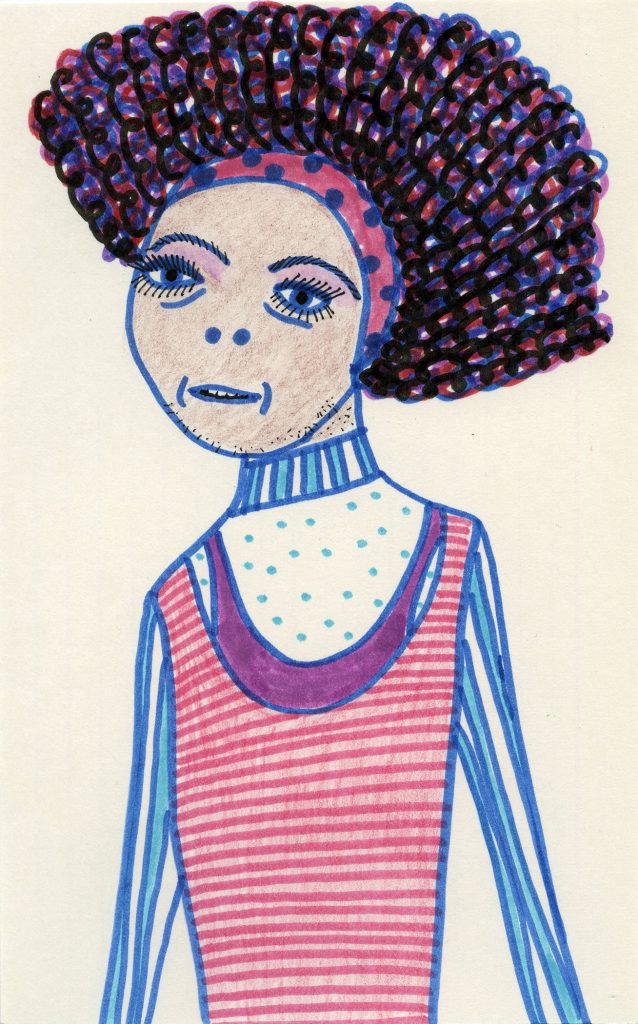 Laylah Ali. Untitled 15, 2017. Archival marker, colored pencil and ink on paper. 8 x 5 inches (20.3 x 12.7 cm)