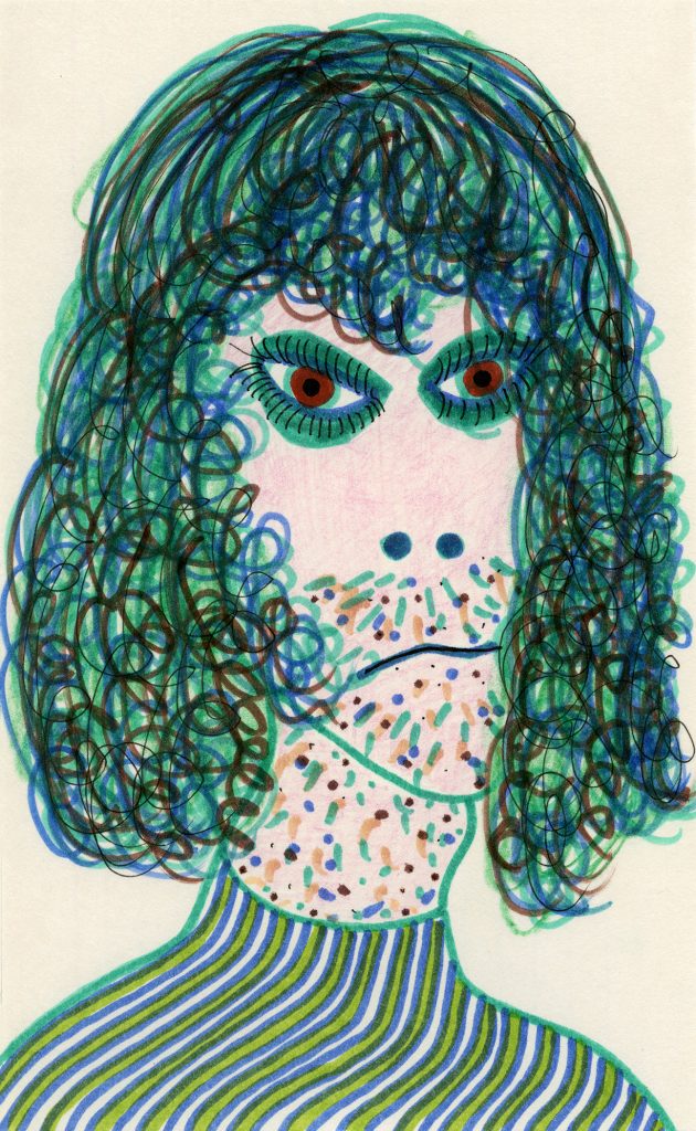 Laylah Ali. Untitled 11, 2017. Archival marker, colored pencil and ink on paper. 8 x 5 inches (20.3 x 12.7 cm)