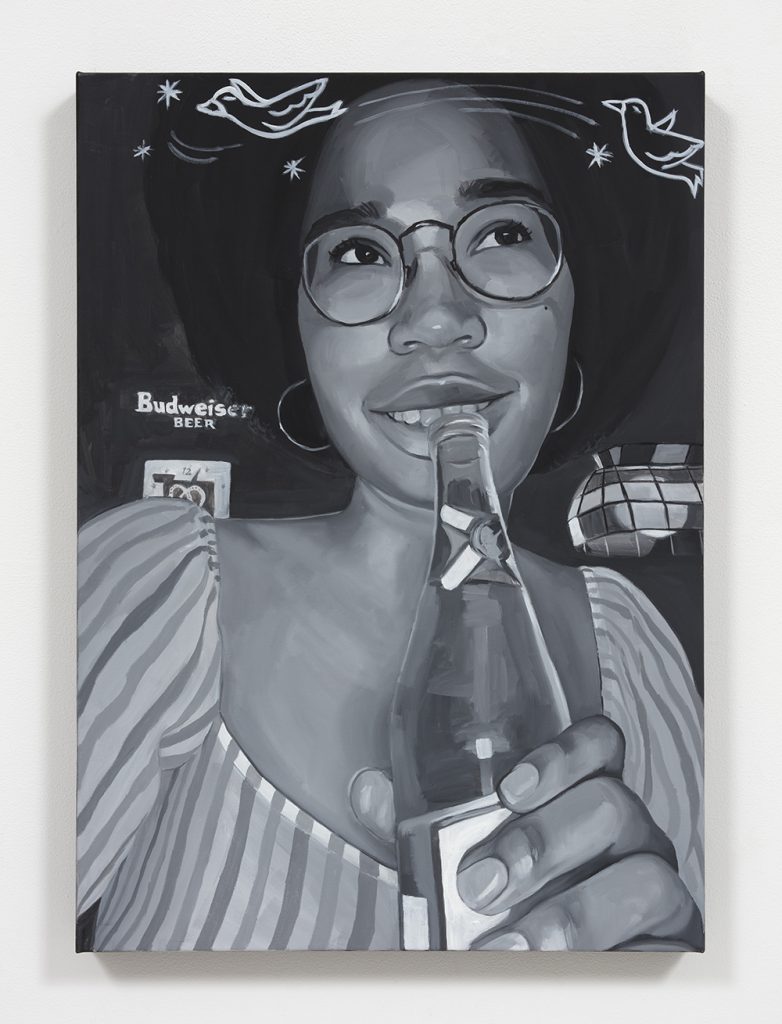 Brittany Tucker. Drinking and Dating?, 2020. Oil on canvas, 27 1/2 x 19 5/8 inches (70 x 50 cm)