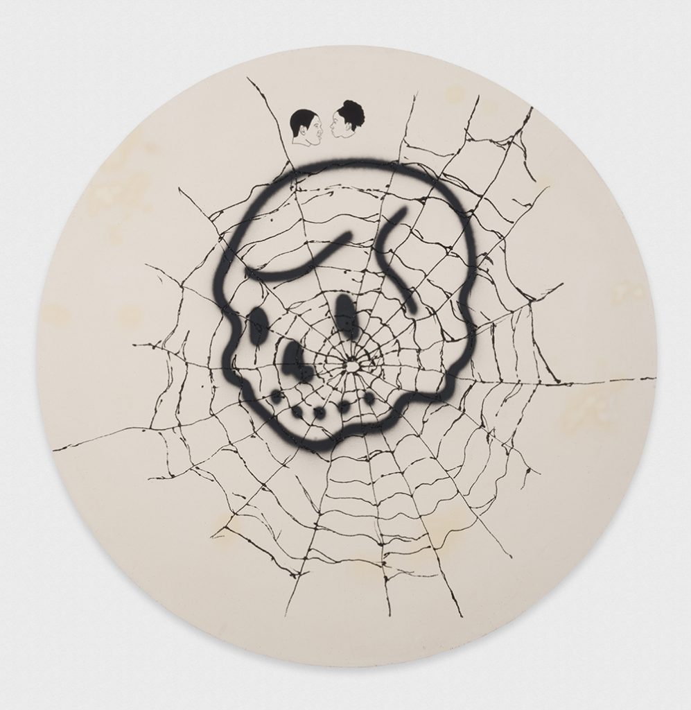 David Leggett. Won’t he do it?, 2017. Acrylic, spray paint and glitter on canvas, 72 x 72 inches (182.9 x 182.9 cm)