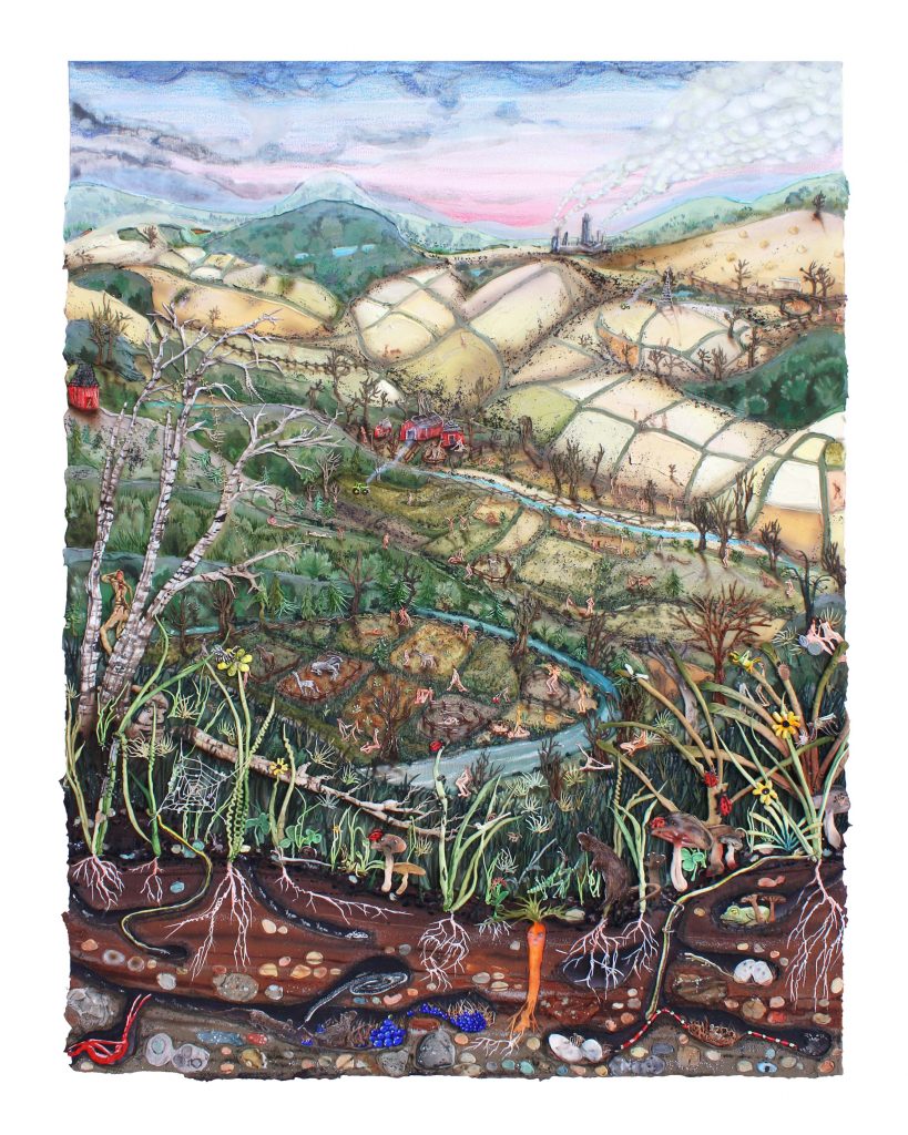 , 2020. Acrylic, watercolor, vinyl paint, oil pastel, oil stick, sand and pumice on canvas. 40 1/4 x 30 1/2 x 2 inches (102.2 x 102.2 x 5.1 cm)