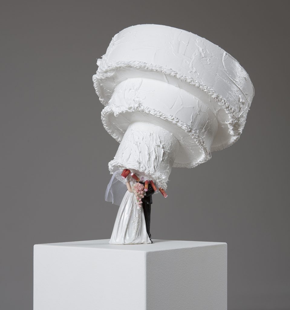 Addie Wagenknecht. Waiting for Mr. Right, 2017. Polystyrene, silicone, alabaster, drip candles and artificial flowers, 47 x 12 1/2 x 11 inches