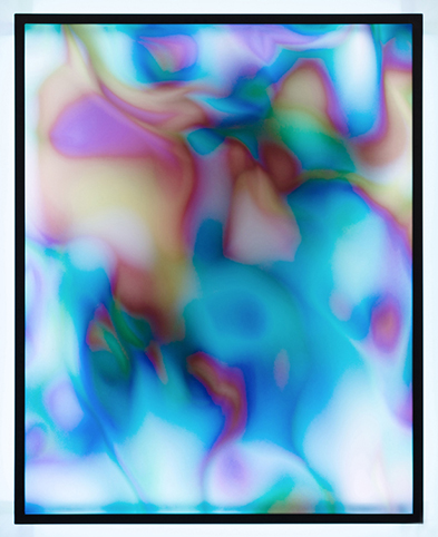 Jonas Lund New Now 12, 2016. UV print on plexiglass, metal frame and LED strip, 49 1/4 x 39 1/2 x 6 inches