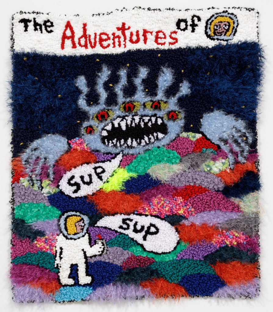 Hannah Epstein. No Fear, All Chill, 2018. Wool, acrylic, polyester and burlap, 41 x 36 inches (104.1 x 91.4 cm)