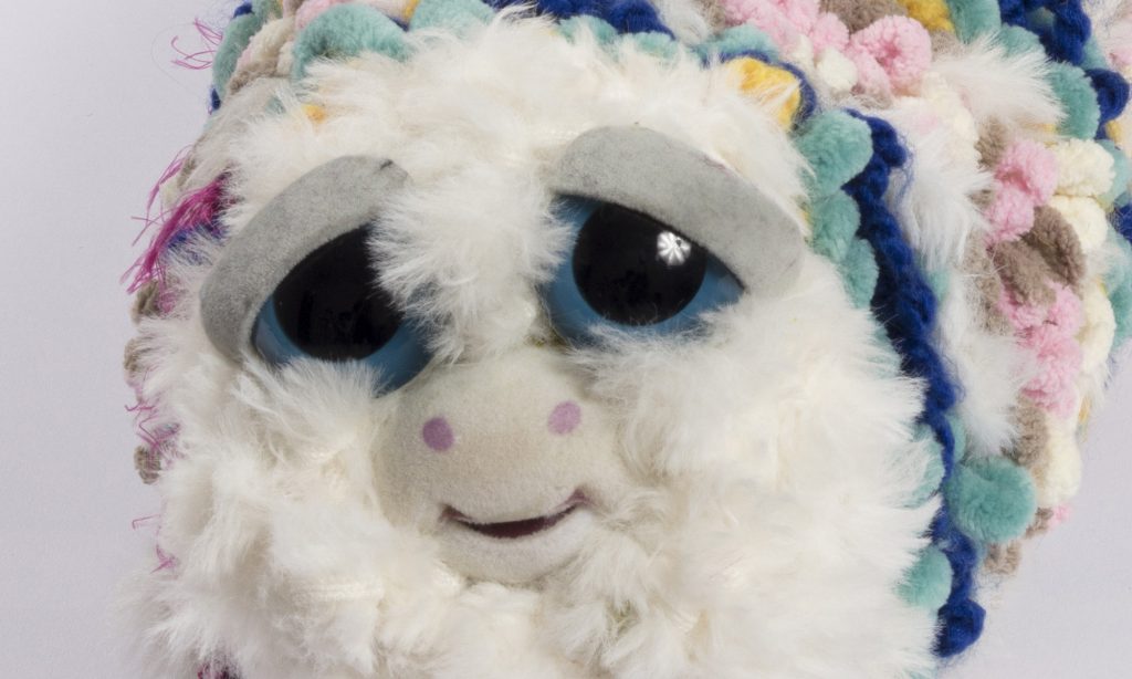 Hannah Epstein. Soft Worm, 2019. Wool, acrylic, burlap, polyfill and found toy parts, 7 x 6 x 56 inches (17.8 x 15.2 x 142.2 cm) Detail