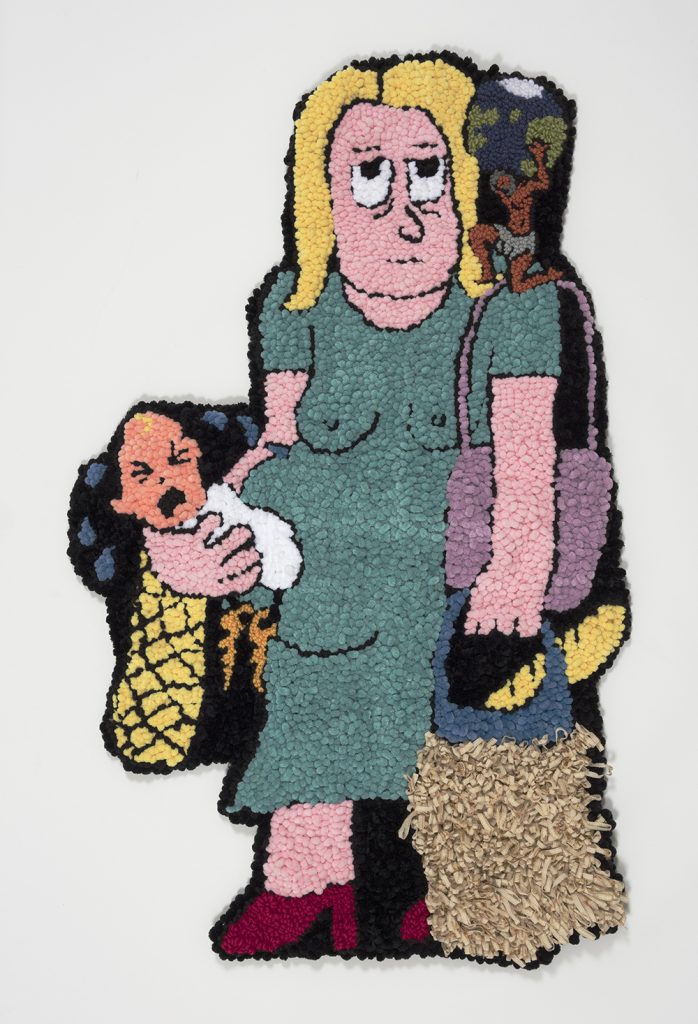 Hannah Epstein. Atlas Lugged, 2019. Wool, acrylic, polyester and burlap, 50 x 31 inches (127 x 78.7 cm)
