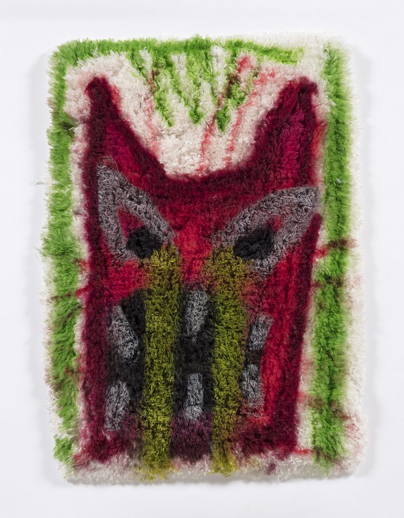Hannah Epstein. Rage Rug, 2019. Spray paint on found rug, 37 1/2 x 25 inches (95.3 x 63.5 cm)