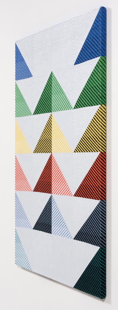 Samantha Bittman, Untitled, 2018. Acrylic on hand-woven textile. 48 x 32 inches (121.9 x 81.3 cm)