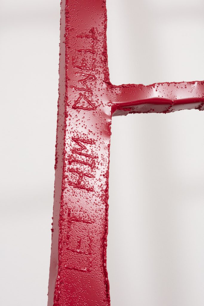 Jesse Pollock. He That Will Not Live Long, Let Him Dwell…, 2019. Welded steel, polyurethane paint, 142 x 31 1/2 x 2 inches (360.7 x 80 x 5.1 cm) Detail