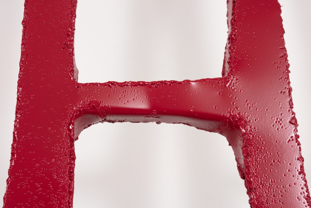 Jesse Pollock. He That Will Not Live Long, Let Him Dwell…, 2019. Welded steel, polyurethane paint, 142 x 31 1/2 x 2 inches (360.7 x 80 x 5.1 cm) Detail