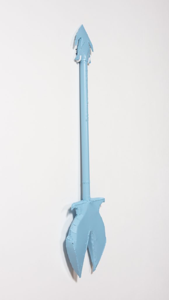 Jesse Pollock. Dyster, 2019. Welded steel, polyurethane paint, 64 1/2 x 17 x 3 inches (163.8 x 43.2 x 7.6 cm)