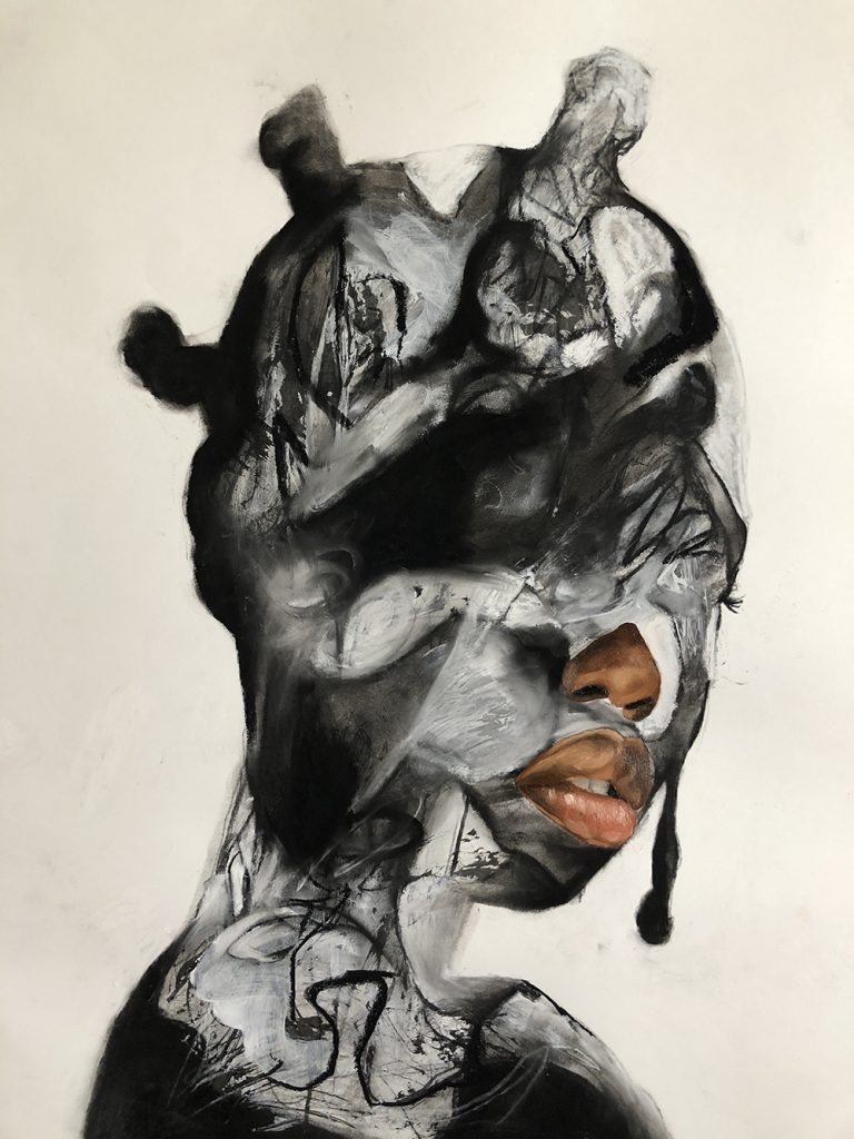 Khari Turner. Black Bantu, 2020. Oil, acrylic and charcoal on paper, 24 x 18 inches (61 x 45.7 cm)