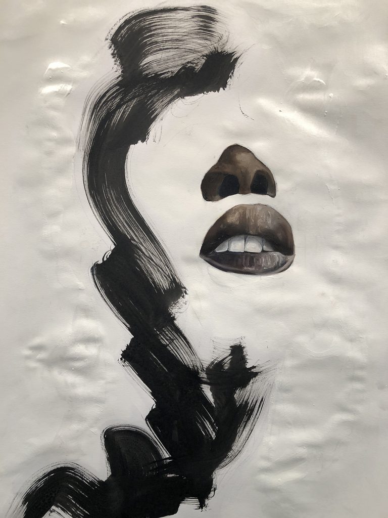 Khari Turner. The Place Between Home and Homeland, 2020. Oil and ink on paper, 24 x 18 inches (61 x 45.7 cm)