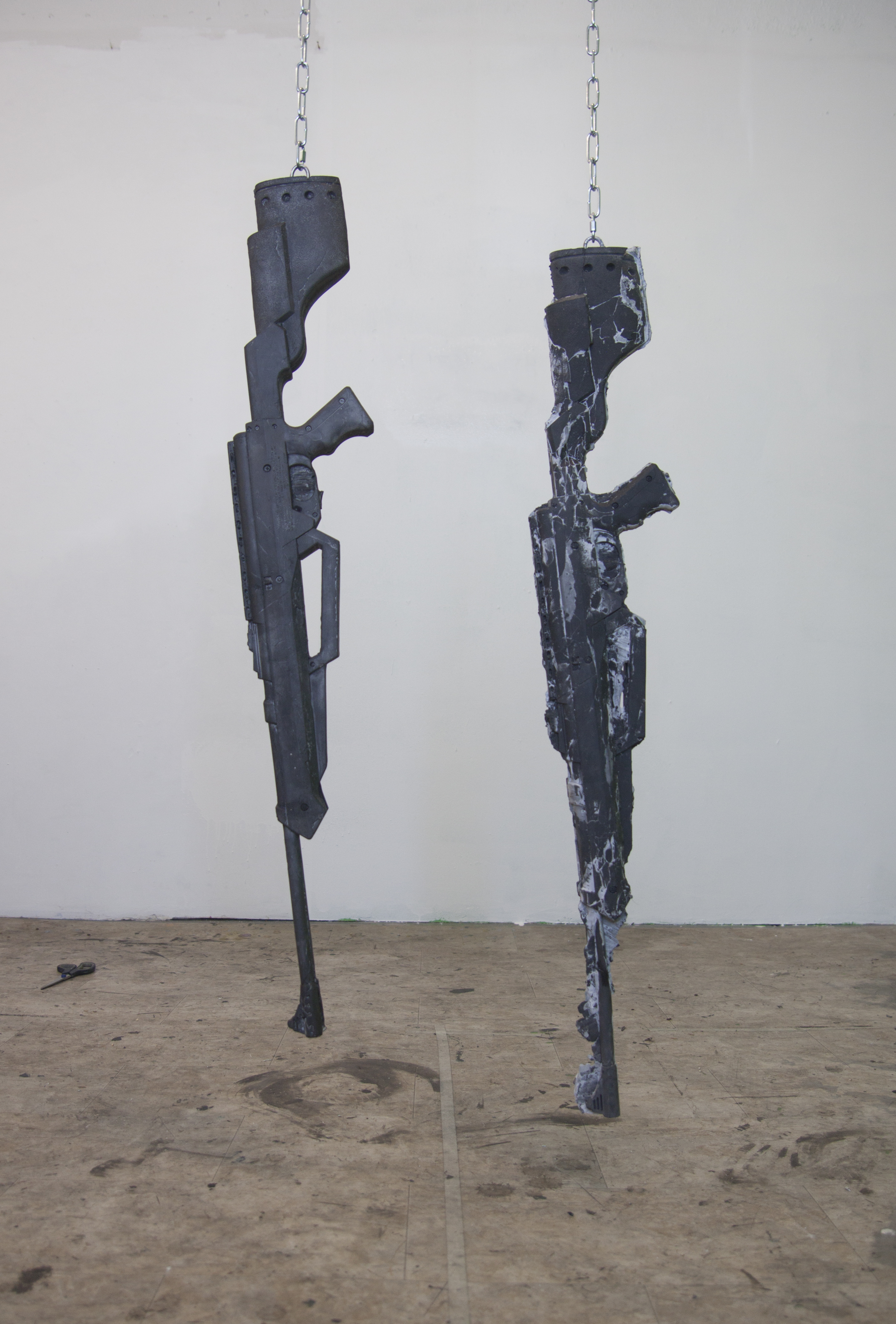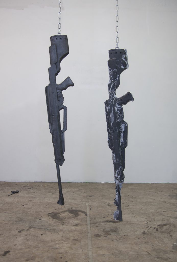 Young Joo Lee. Empire, 2018. Graphite, hydrocal and aluminum. 40 x 7 x 2 1/2 inches (101.6 x 17.8 x 6.4 cm) each