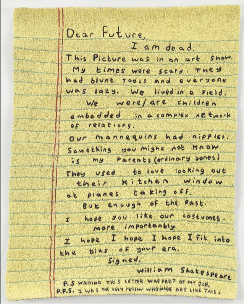 Simon Evans™. Letter to the Future, 2011. Hand-stitched embroidery, 11 3/4 x 9 1/2 inches (29.8 x 24.1 cm)