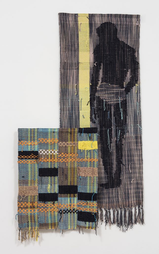 Diedrick Brackens. Blue Under Night, 2017. Woven cotton yarn, 78 x 31 inches & Wading Still, 2017. Woven cotton and nylon yarn, 40 x 29 1/2 inches