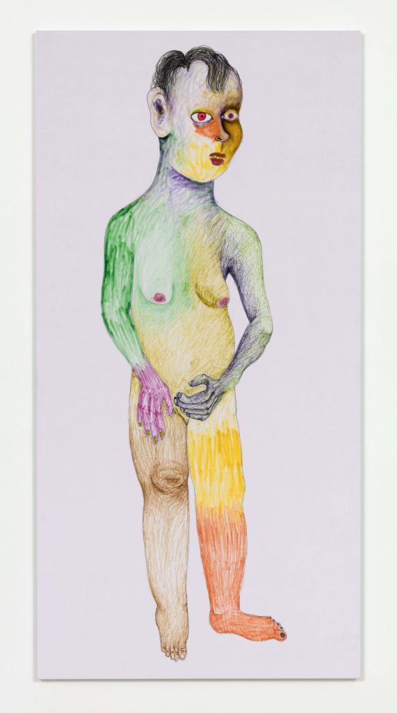 Lev, 2017. Fabric marker on velvet, 100 x 50 1/4 inches