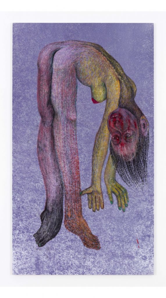 Candice, 2017. Oil pastel and acrylic on crushed velvet, 97 1/4 x 54 1/2 inches
