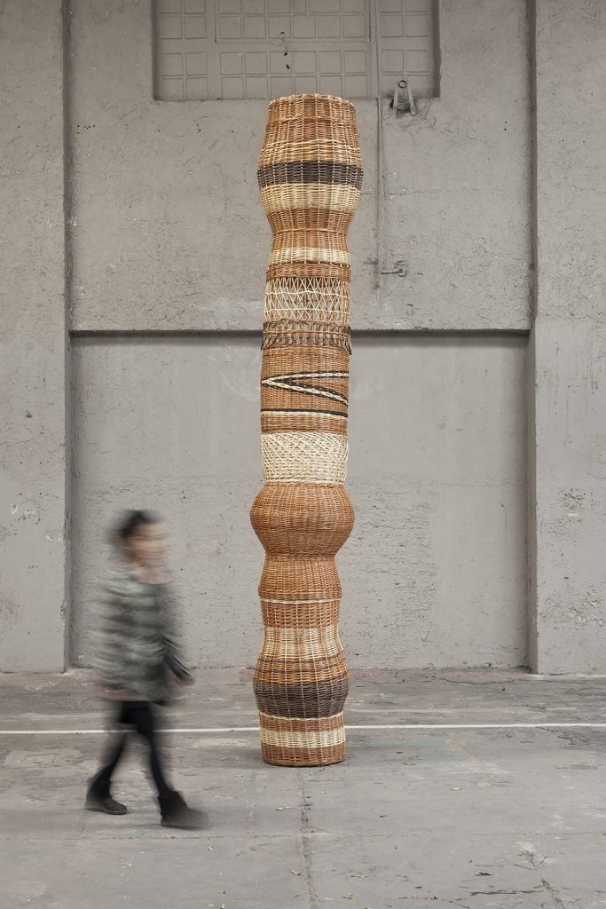 Eugenia Mendoza. Column, 2018. Wicker, 157 1/2 x 31 1/2 x 31 1/2 inches (400 x 80 x 80 cm)