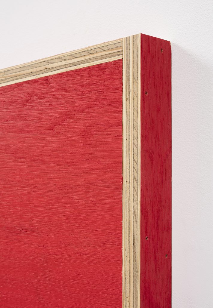 G.T. Pellizzi. Transitional Geometry in Red, 2017. Eggshell acrylic on plywood, 25 3/4 x 30 1/4 x 5 inches. Detail